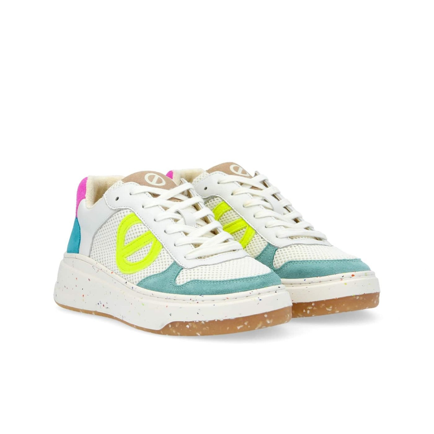 LA BRIDGET SNEAKER REVENDIQUE FIÈREMENT SON INSPIRATION RÉTRO À TRAVERS UN MIX AUDACIEUX DE COULEURS POP ET FLUO QUI VIENNENT DYNAMISER UNE TIGE EN MESH RECYCLÉ* BLANC. REPOSANT SUR UNE ÉPAISSE SEMELLE EN CAOUTCHOUC RECYCLÉ*, CETTE NO NAME AUDACIEUSE TASSURE UN LOOK TERRIBLEMENT ACTUEL ET RESPONSABLE.