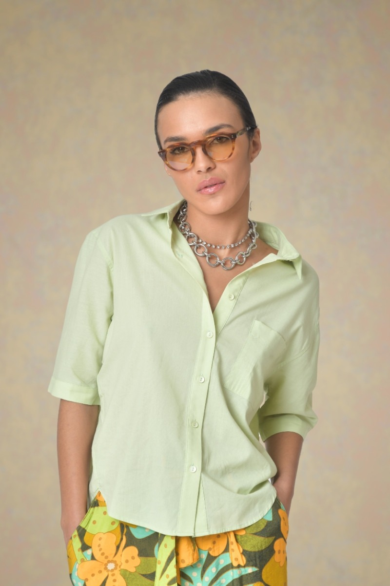 ORFEO - CHEMISIER AMELIE AMÉLIE EST UNE CHEMISE OXFORD À MANCHES COURTES AVEC REVERS ET PATTE DE BOUTONNAGE, DANS UNE COUPE OVERSIZE, AGRÉMENTÉE D'UNE POCHE PLAQUÉE À LA POITRINE.