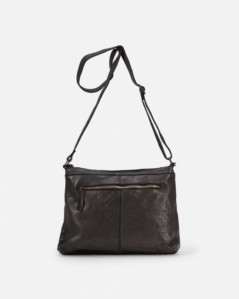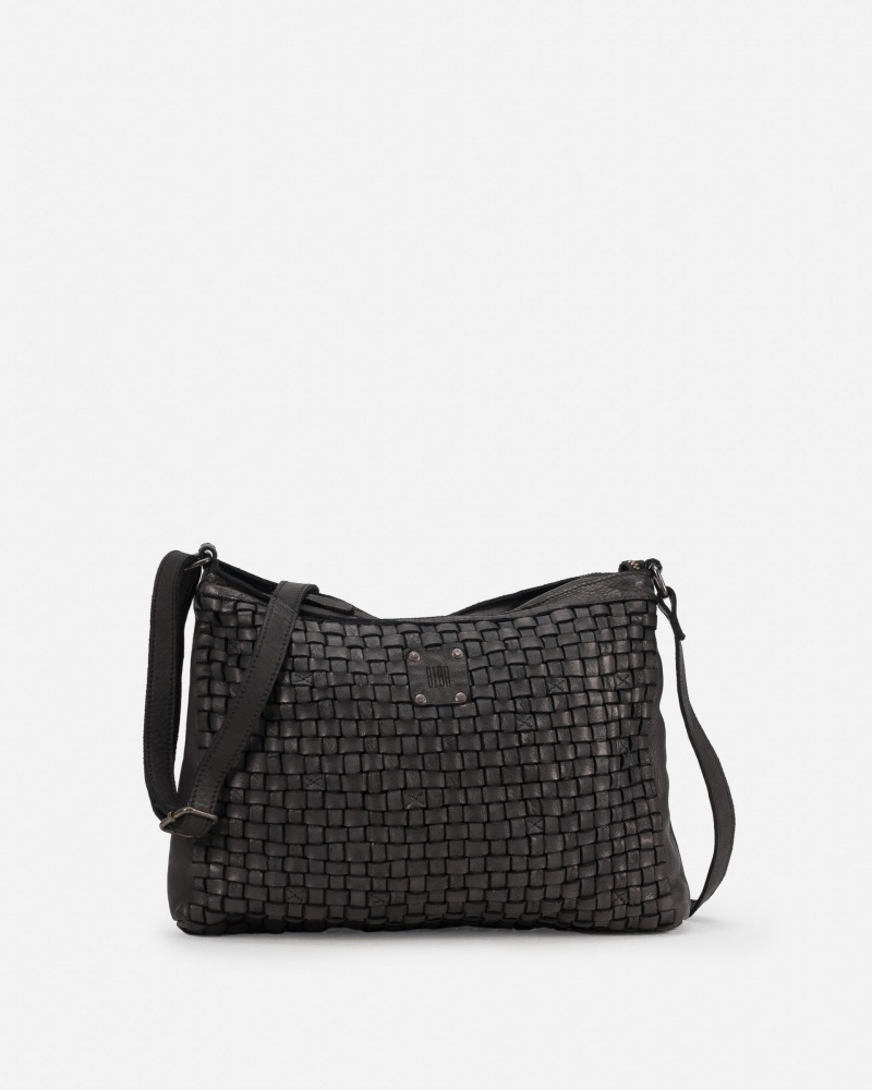 WASHED, VEGETABLE-TANNED, AND HAND-BRAIDED COWHIDE LEATHER CROSS BAG. ZIP CLOSURE, ADJUSTABLE SHOULDER STRAP, INTERNAL AND EXTERNAL POCKETS, AND COTTON LINING.
