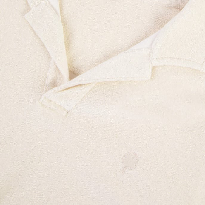 LE POLO ZONZA ÉCRU A ÉTÉ PENSÉ PAR NOTRE STUDIO COMME UNE PIÈCE RÉTRO ET CONFORTABLE. SA MATIÈRE ÉPONGE LUI CONFÈRE UN LOOK UNIQUE, PARFAITEMENT ADAPTÉ POUR L'ÉTÉ. SA COUPE EST DROITE.
