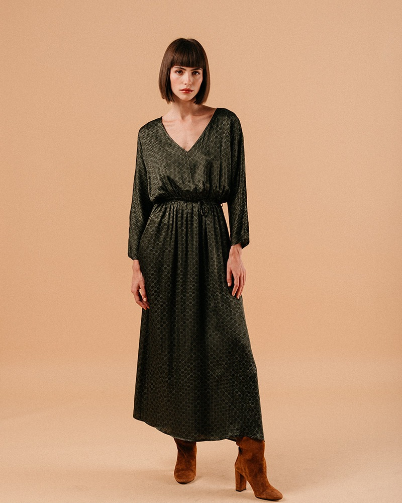 LA SILHOUETTE : LA ROBE LUNA EST UNE ROBE ÉLÉGANTE ULTRA FÉMININE. ON ADORE SON TISSU SATINÉ ET FLUIDE QUI APPORTE DE LA LÉGÈRETÉ À LA SILHOUETTE ET QUI SUBLIME PARFAITEMENT LES COURBES. UNE ROBE IRRÉSISTIBLE QU'IL EST UN MUST HAVE DANS VOTRE DRESSING. COMMENT PORTER UNE ROBE MAXI ? CHEZ GRACE & MILA, LA ROBE MAXI LUNA EST ASSOCIÉE À LA CEINTURE LETINO. ON AIME AUSSI LA PORTER AVEC DES BOTTES À TALONS POUR UNE SILHOUETTE ENCORE PLUS ÉLANCÉE.