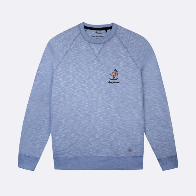 AJOUTE À TON DRESSING LE SWEATSHIRT DARNEY BLEU CLAIR DE CHEZ FAGUO, LE CHOIX IDÉAL POUR CEUX QUI AIMENT ASSOCIER STYLE ET CONFORT. CE SWEAT À MESSAGE HOMMEEST BIEN PLUS QU'UN SIMPLE VÊTEMENT : SON MOLLETON FLAMMÉ T'OFFRE UNE DOUCEUR ENVELOPPANTE, IDÉALE POUR AFFRONTER TOUTES TES JOURNÉES. SA BRODERIE "SANS PRESSION" ORNÉE D'UN FLAMANT ROSE APPORTE UNE TOUCHE D'HUMOUR. CE SWEATSHIRT BLEU CLAIR AUX MANCHES RAGLANS TE GARANTIT CONFORT AU QUOTIDIEN. TU PEUX FACILEMENT L'ASSOCIER À UN JEAN ET DES BASKET