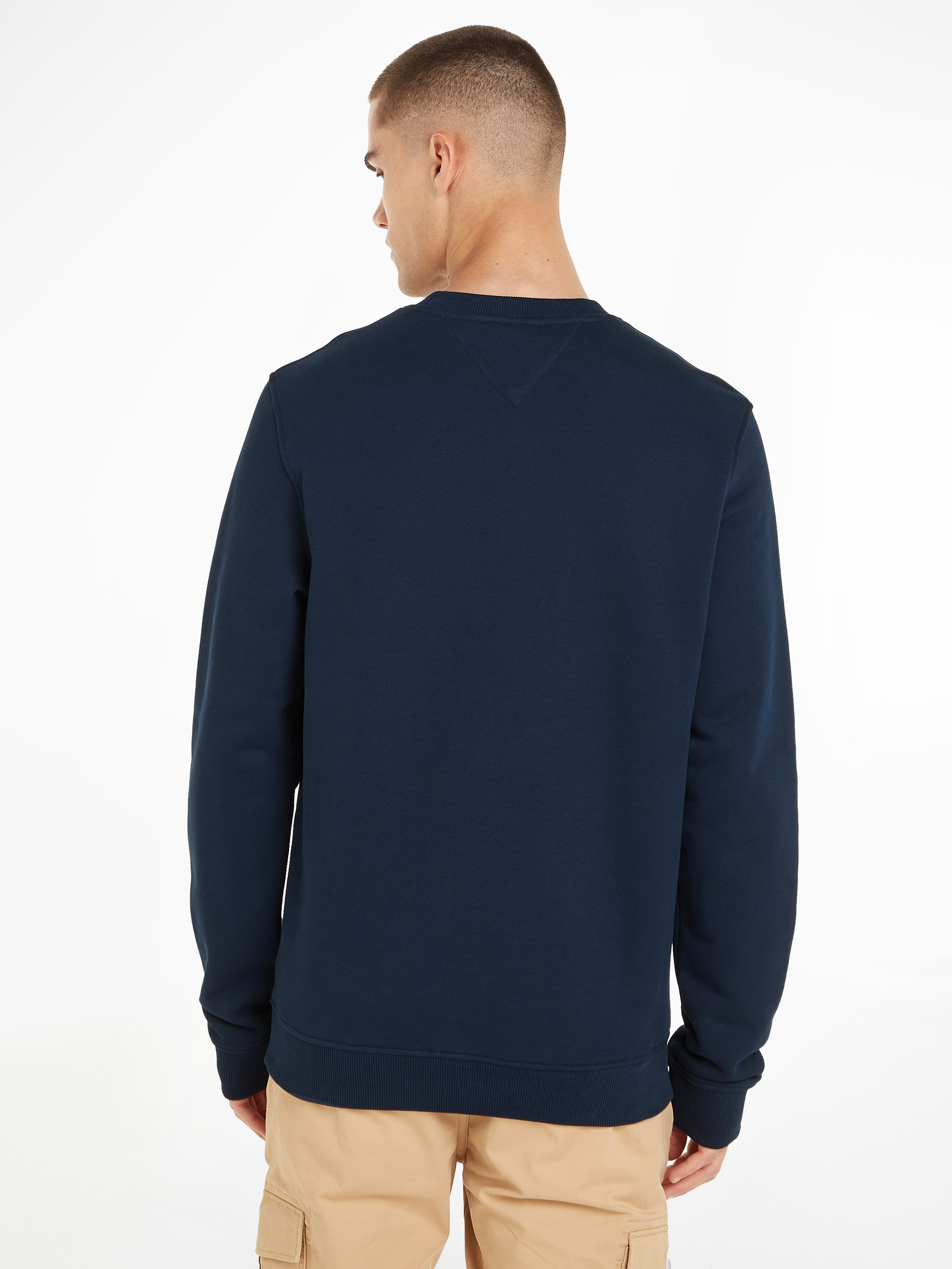 CE SWEAT EN PUR COTON EST UN INCONTOURNABLE POUR COMPOSER DES LOOKS DÉCONTRACTÉS. IL ADOPTE UNE COUPE STANDARD CONFORTABLE, UN COL RAS-DU-COU CLASSIQUE ET UN BADGE SUR LA POITRINE. POINTS FORTS TISSU ÉPONGE EN PUR COTON EN PARTENARIAT AVEC LA BETTER COTTON INITIATIVE COL RAS-DU-COU COL, POIGNETS ET OURLET CÔTELÉS BADGE TOMMY SUR LA POITRINE BRANDING TOMMY JEANS COUPE ET TAILLE STANDARD LE PREMIER MODÈLE MESURE 1M86 ET PORTE UNE TAILLE M