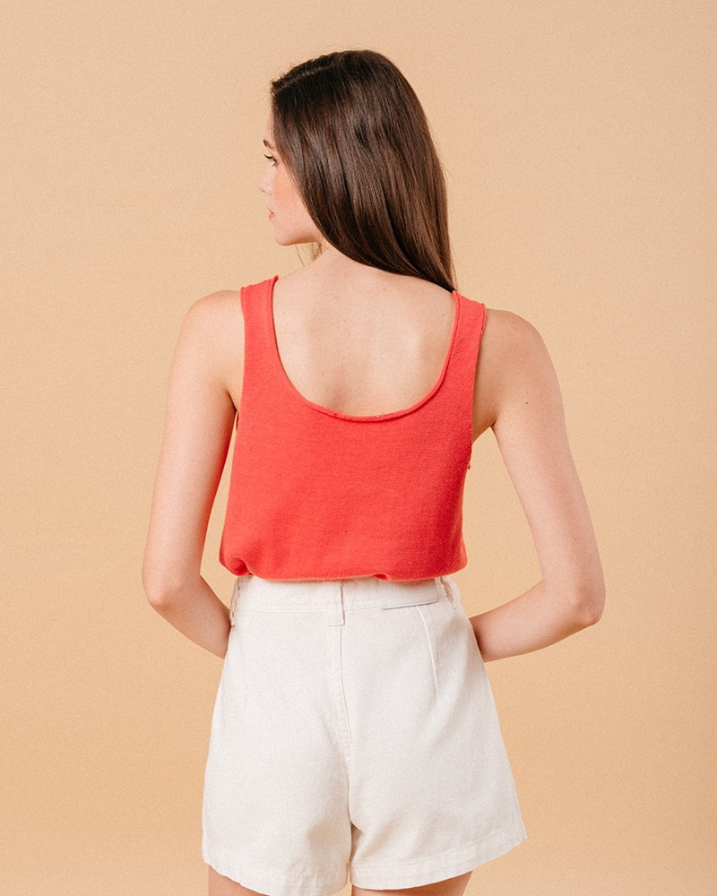 GRACE & MILA - MOUCHOIR MOUCHOIR EST UN DÉBARDEUR EN MAILLE TRICOTÉ DANS UN MÉLANGE DE COTON ET DE LIN AVEC UNE DOUBLE ENCOLURE ARRONDIE. SES FINITIONS SONT ROULOTTÉES À L'ENCOLURE ET AUX EMMANCHURES. SA COUPE EST DROITE.