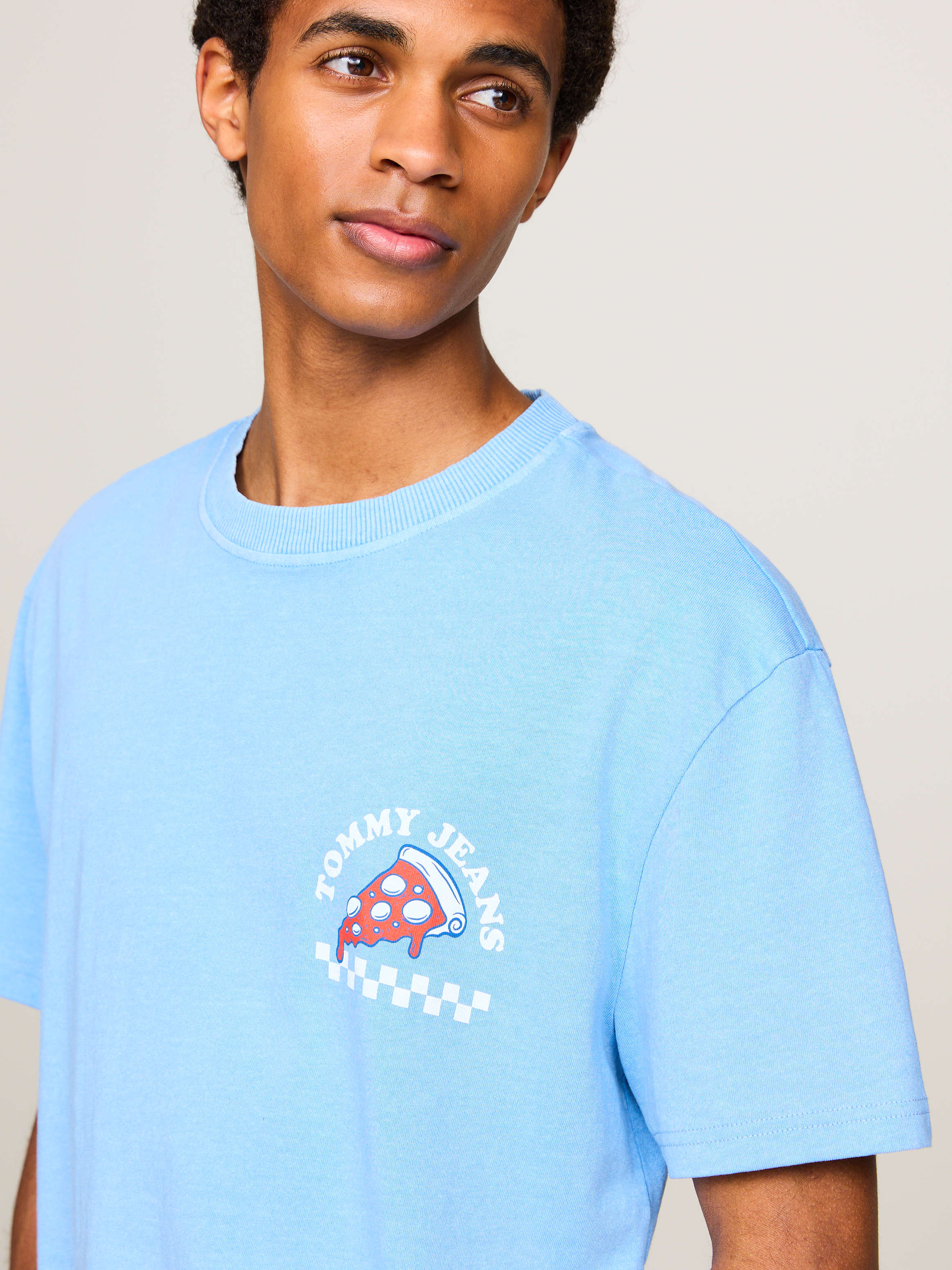 CE T-SHIRT EN COTON BIO DOTÉ D'UN LOGO GRAPHIQUE ORIGINAL AU DOS APPORTERA UNE NOTE DE FANTAISIE À VOS TENUES DÉCONTRACTÉES. POINTS FORTS PUR COTON BIO COL RAS-DU-COU LOGO TOMMY JEANS GRAPHIQUE SUR LA POITRINE LOGO TOMMY JEANS GRAPHIQUE OVERSIZE AU DOS BRANDING TOMMY JEANS
